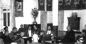 On March 16-19, 1993, a meeting was held in Dharamsala, India, between His Holiness The Fourteenth Dalai Lama and a group of twenty-two Western Dharma teachers from the major Buddhist traditions in Europe and America. Also present were the Tibetan lamas Drikung Chetsang Rinpoche, Pachen Otrul Rinpoche, and Amchok Rinpoche. The aim of the meeting was to discuss openly a wide range of issues concerning the transmission of Budhadharma to Western lands.