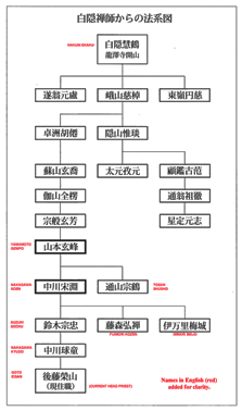 今白隠と呼ばれた山本玄 Dharma Transmission Genealogical Table From the Zen Master Hakuin.