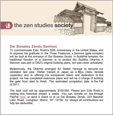 A Zen StudiesnSociety Email.NEW YORK ZENDO SHOBO-JI