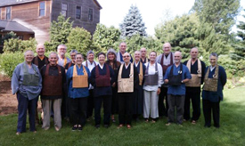 “So many of you have written beautiful cards and emails and have phoned regarding my health. Please know that I am grateful for your concern and your chanting, and it has helped a lot. I have taken every imaginable test, and the results are very encouraging: no sign of stroke, my heart is functioning fine now, and the congestion in my lungs has cleared. After a few days' rest, I was able to lead the three-day summer sesshin at Hoen-ji, and I am now looking forward to O-Bon, which is such a deeply meaningful ceremony for all of us.” “As I know you all know, sitting and sharing the Dharma is incomparably the best way to heal. At the same time, I am learning to listen to my body, and to yield when rest is needed. This Mind is unlimited, but our bodies are not. I will do my best to model this for all of us.” “We are really fortunate in having a great group of residents at Dai Bosatsu Zendo, three of whom will begin 1,000-days training as monks at the end of Golden Wind Sesshin. All who did spring kessei are returning, and several new kessei students will be joining us in September, bringing our total to about fifteen.” |