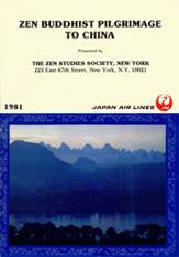 “The Zen Studies Society, New York, is the first Buddhist organization in the United States invited to make a pilgrimage to China to visit temples, pagodas and places of practice of the revered Zen Buddhist Patriarchs, especially those of the T’ang (618-907 AD) to the Sung Dynasties (960-1279 AD). The participants in this tour will have a rich experience of this Golden Age in China, during which art and architecture flourished along with religion.” |