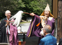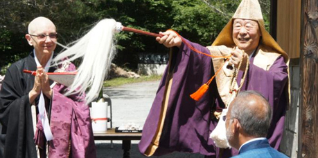 [And yet – two years after the alleged "resignation" at a Sanmon Gate Ceremony at Dai Bosatsu Zendo on August 12, 2012 Chayat appears with Shimano, smiling and in full regalia, conducting a public dedication. ] |