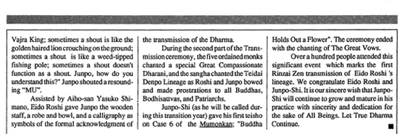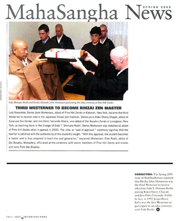 It was interesting to see this little correction two issues later. It perhaps did not have the flash of the announcement of the now obvious fourth westerner to become a Rinzai Zen master story, but There are no morals in Zen.. It could appear that Shimano got better press, big color picture, article - indeed it was a success and hardly any one will pay much attention to the brief correction published in Buddhadharma two issues later.