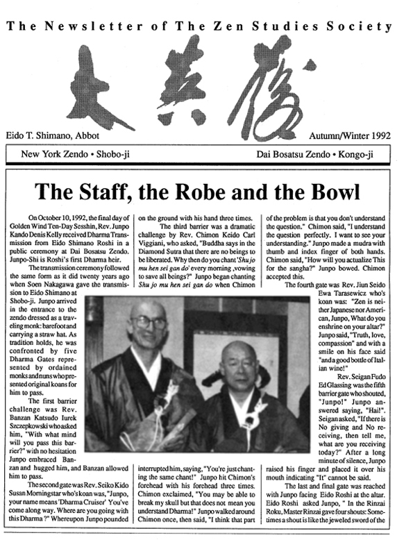 One day in 1993, completely by surprise, I received a call from Aiho Shimano, Eido Roshi’s wife and director of New York Zendo in Manhattan. This was an unusual call, I was often called to repair and maintain the building and equipment at New York Zendo and receiving a call from Aiho about a leaky toilet or difficulty with the heating system was not out of place. This call however was different, she told me that she wanted to have a formal meeting with me in Manhattan as soon as possible.